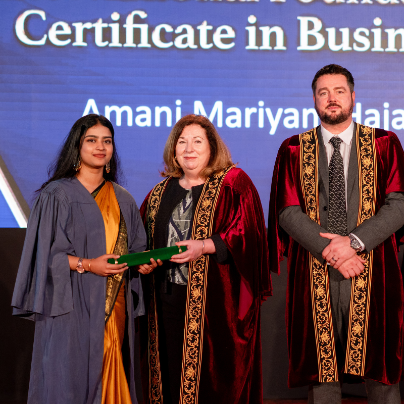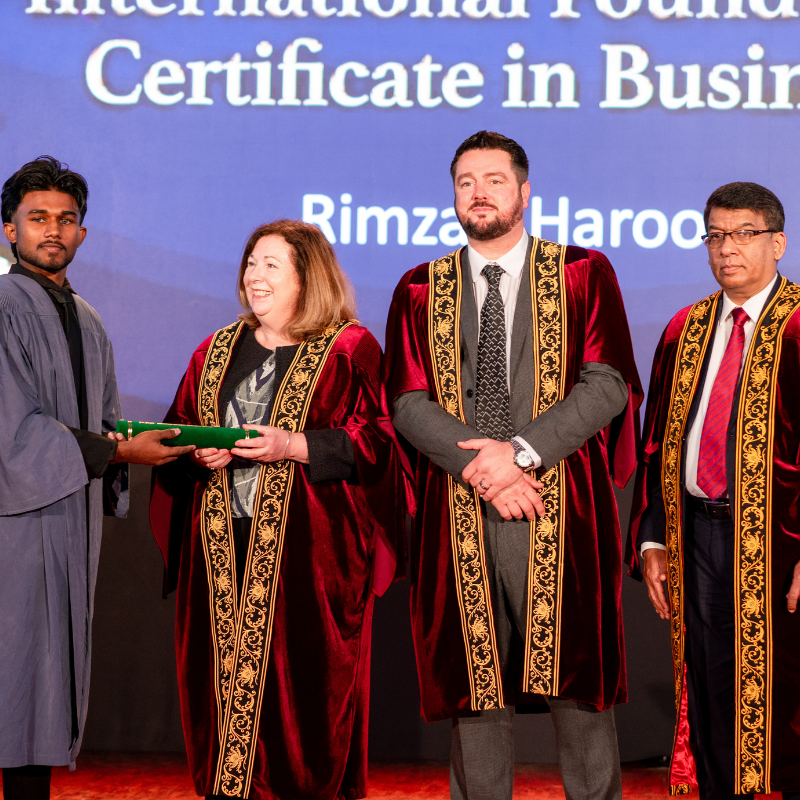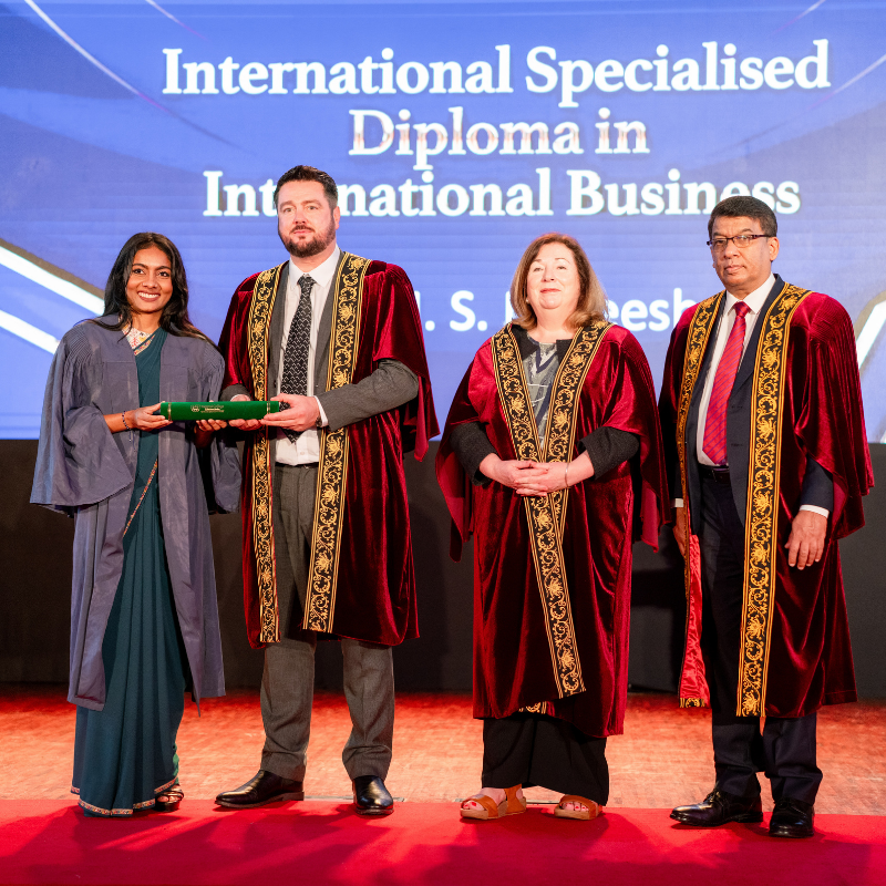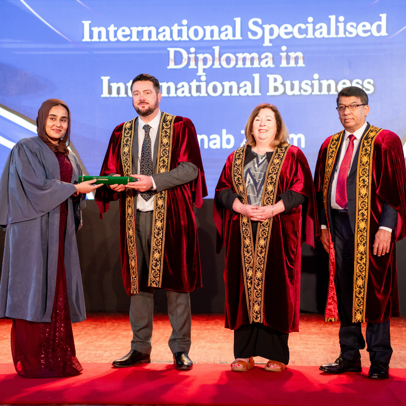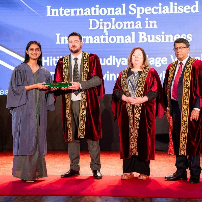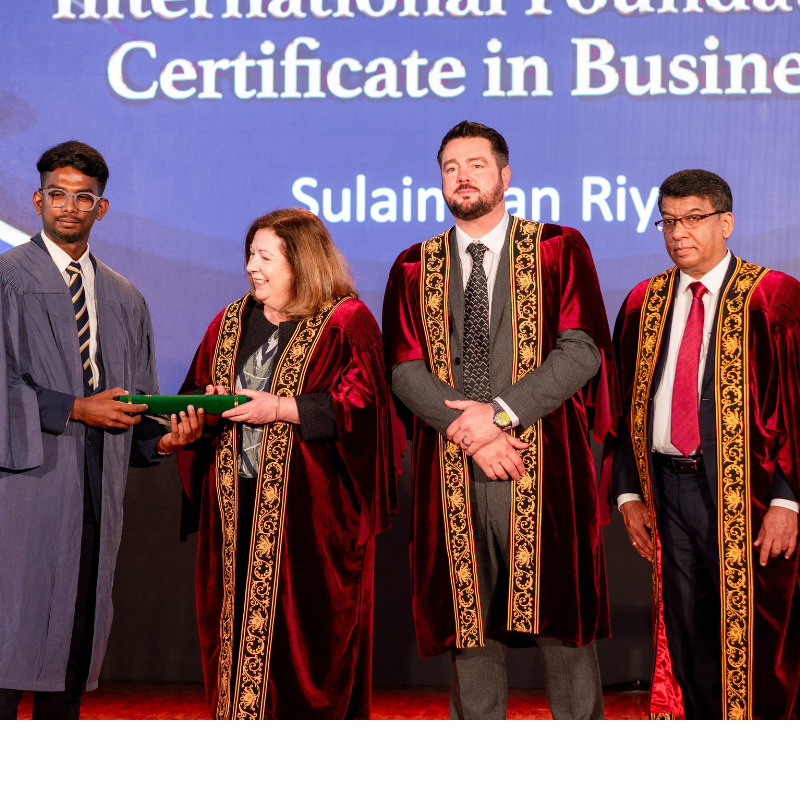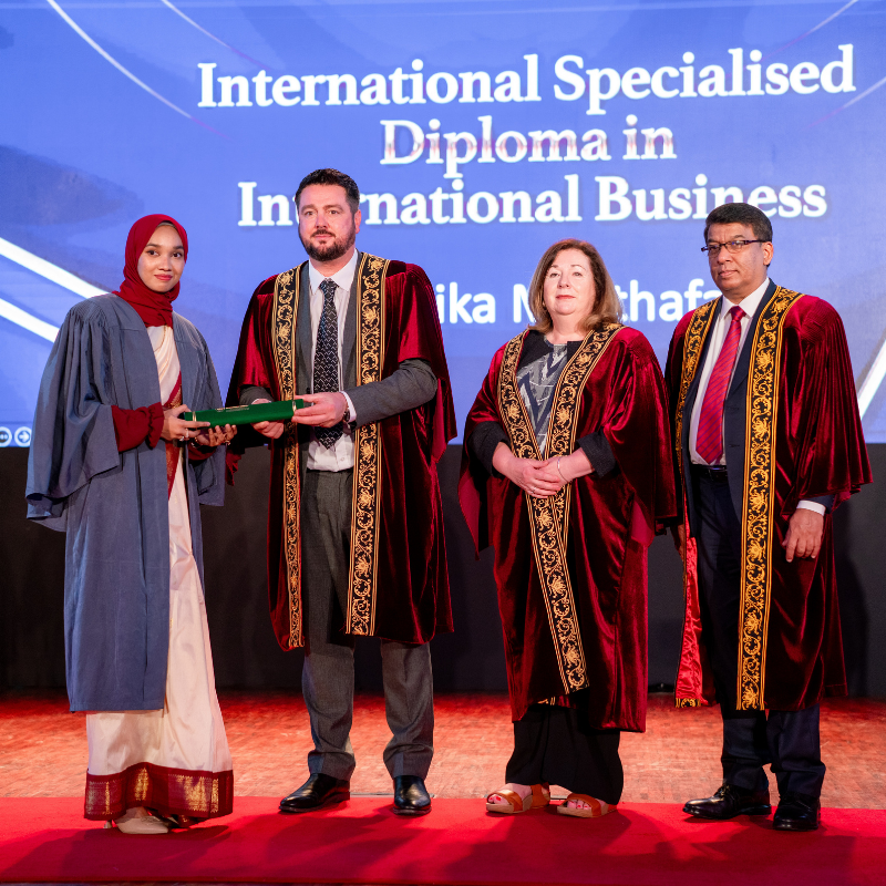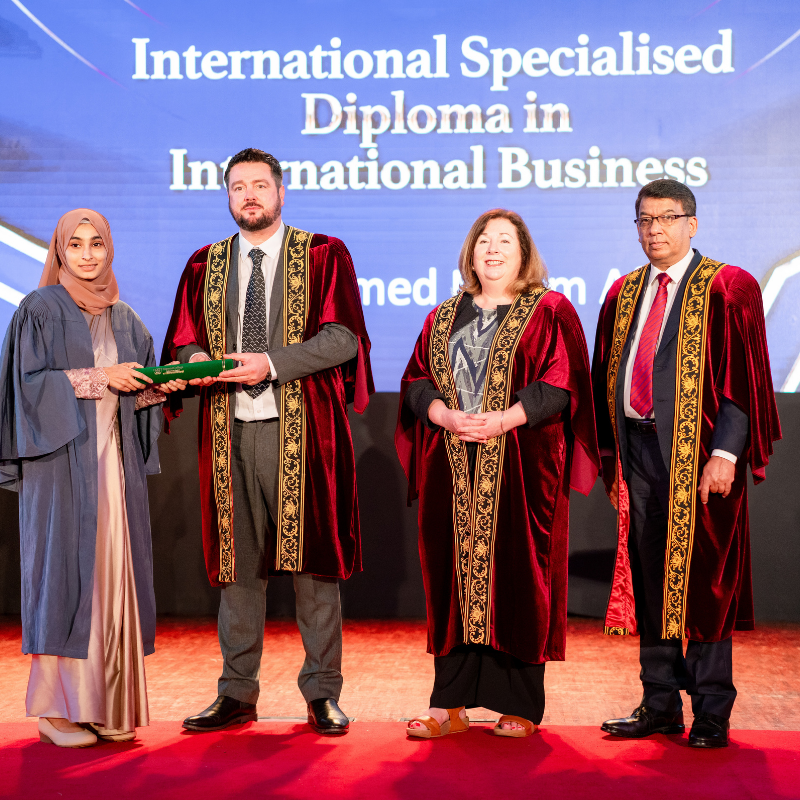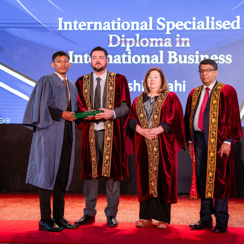 Graduates who successfully completed the International Foundation Certificate in Business (Level 6) and the International Specialised Diploma in Business Management across key specialisations—including International Business, Marketing Management, and Human Resource Management—were honoured during the ceremony.